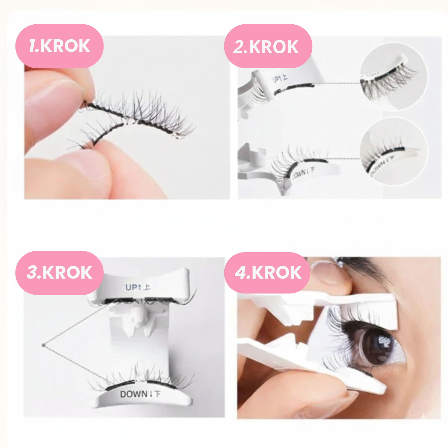 Řasy se skládají z horní a spodní části s magnety. Ty se při přiložení automaticky spojí a pevně drží.